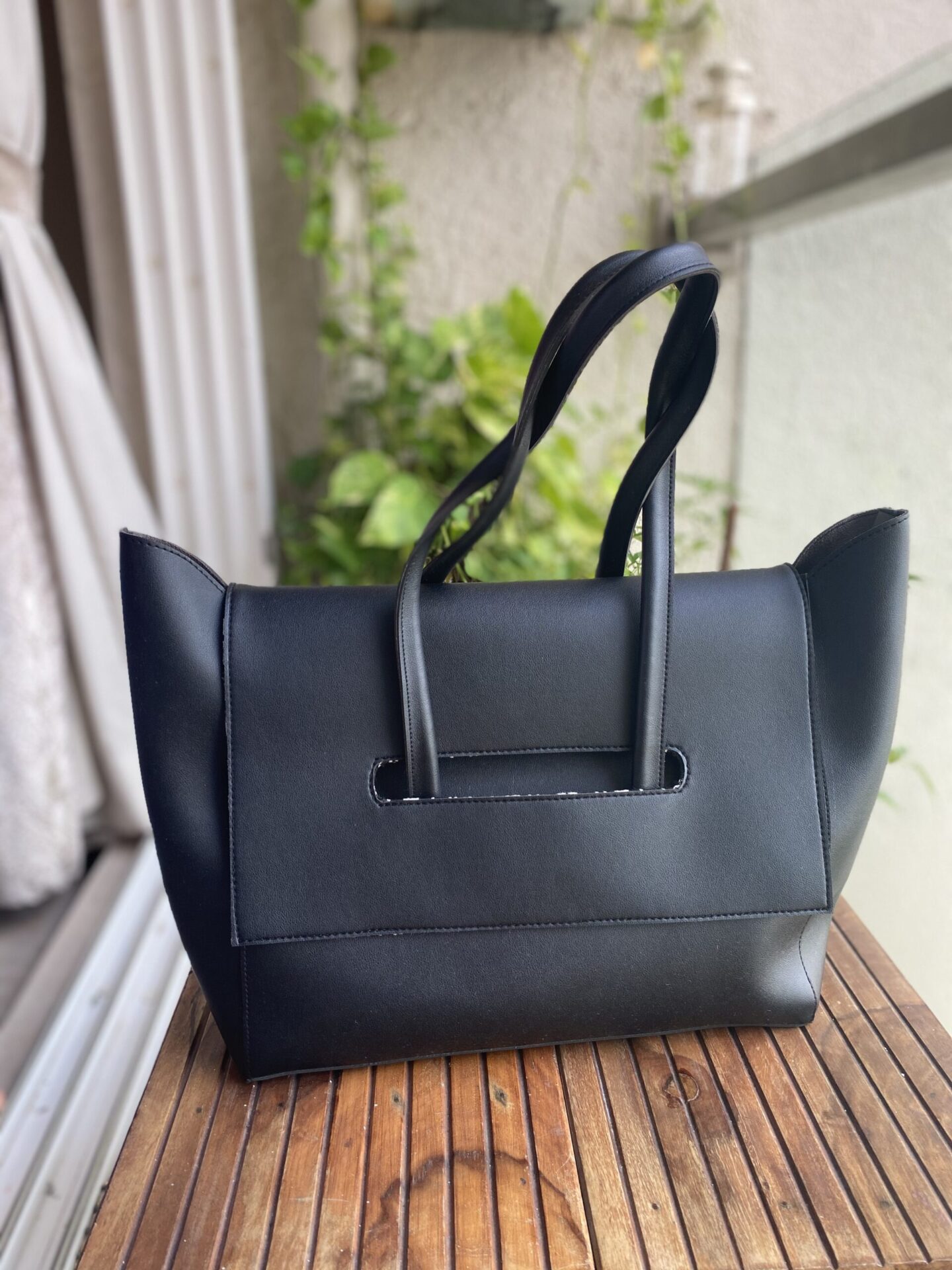 A bag which can which can be used in three ways. It has 2 compartments and comes with a detachable pouch inside.